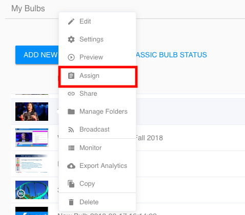 - Find the bulb you want to assign. Click the bulb icon or the triple dots > Assign.