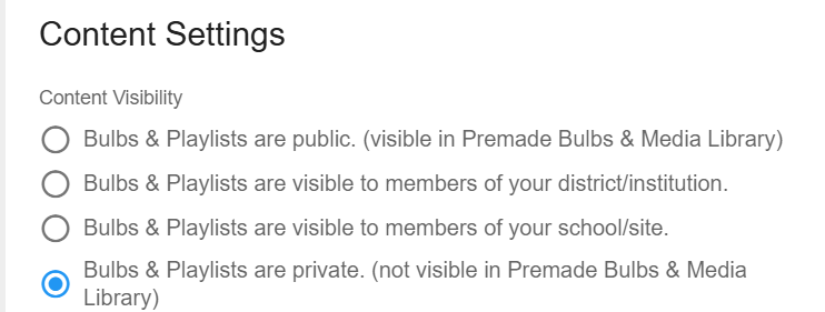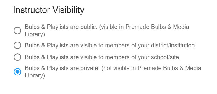 - Bulbs & Playlists are visible to members of your district/institution - Bulbs and Playlists will be visible to members of just the institution