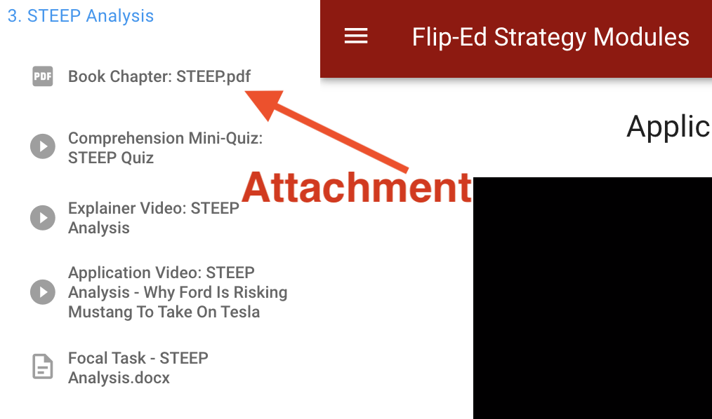 There are also two attachments per module; the book chapter and the focal task. Click on the attachments to download them.