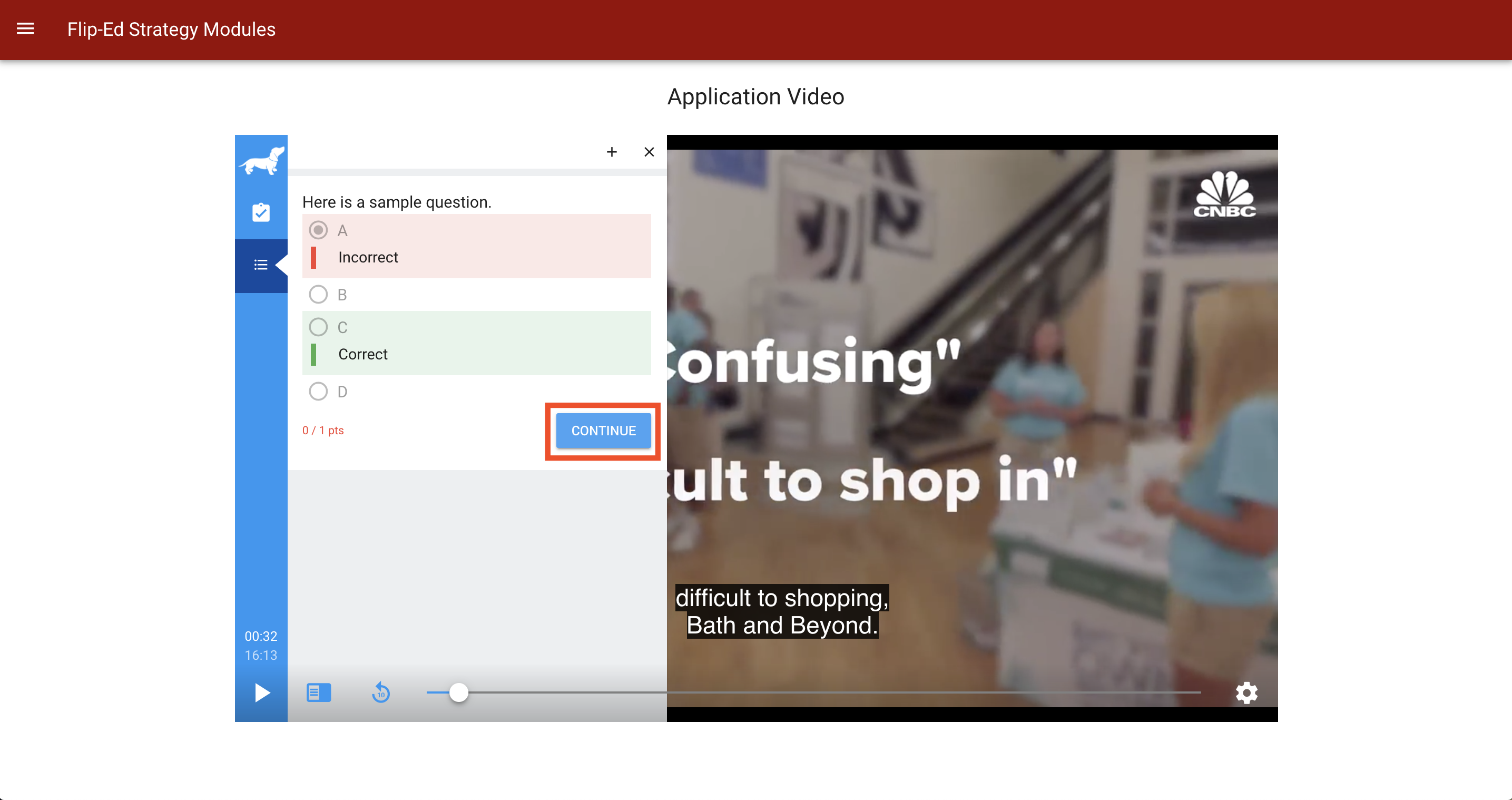 After you submit your response, you will receive automatic feedback to let you know if you were correct or incorrect. Click Continue to start playing the video.