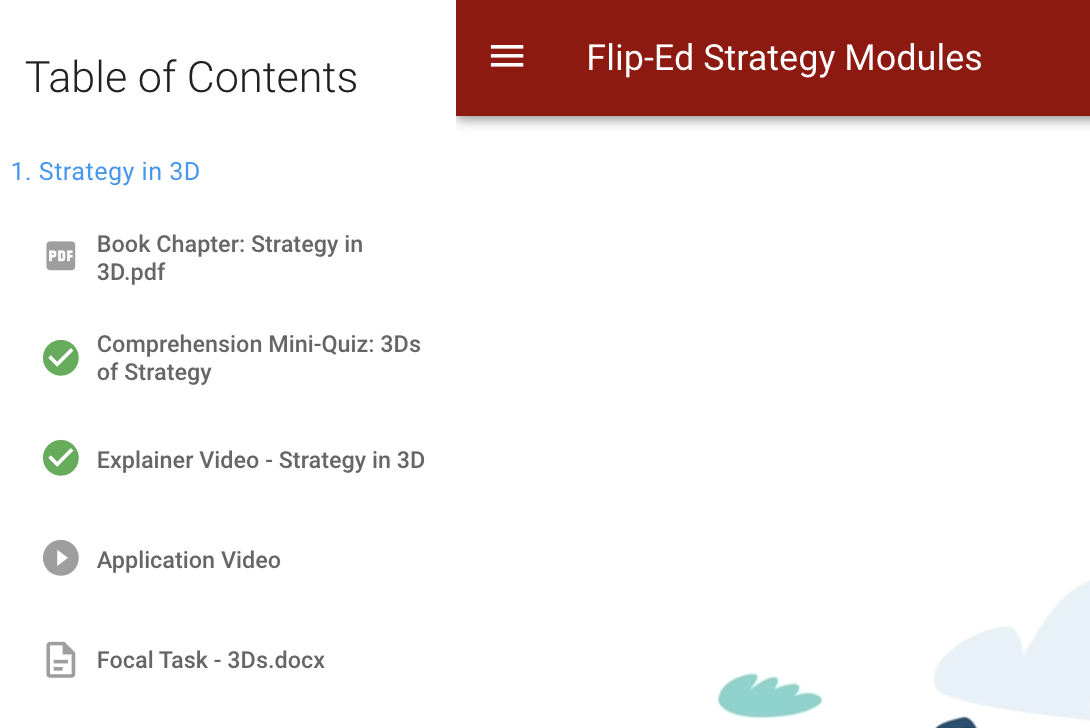 - After you have submitted payment, you will have access to the Flip-Ed Strategy Modules.